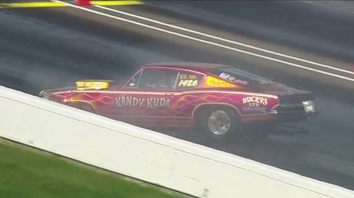 Hess, who drives the Kandy Kuda 1968 Plymouth Barracuda driven was blazing through eliminations after driving to the No. 1 qualifying earlier in the day. In the opening round, Hess knocked out Jim Keyes and his Barracuda then edged Eldon Baum Jr.’s ’68 Dodge Dart to earn a bye run into the semifinals, but that was where his day came to an abrupt end.