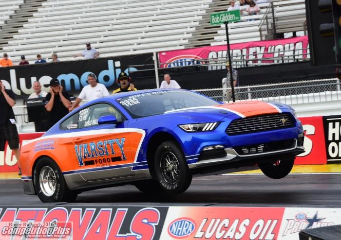 Jeff Lopez started from the middle of the Stock Eliminator field behind the wheel of his 2014 Camaro and snagged the victory by less than two feet over Charlie Downing’s Mustang in a battle of Factory Stock entries. The victory was the fourth for Downing.