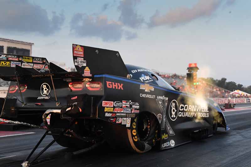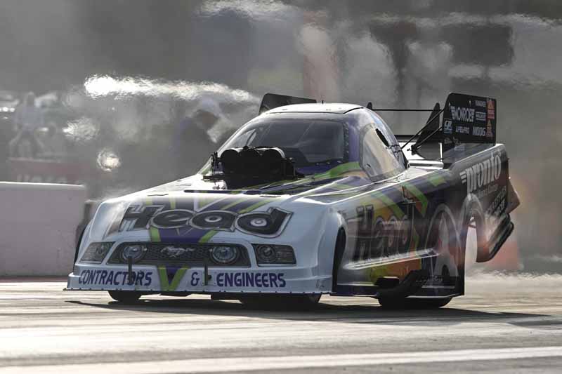 Funny Car — 1. Blake Alexander, Ford Mustang, 3.874, 331.61; 2. Alexis DeJoria, Toyota GR Supra, 3.882, 332.84; 3. Bob Tasca III, Mustang, 3.884, 332.59; 4. Cruz Pedregon, Dodge Charger, 3.894, 330.07; 5. Paul Lee, Charger, 3.912, 321.12; 6. Austin Prock, Chevy Camaro, 3.916, 330.15; 7. Jack Beckman, Camaro, 3.920, 322.65; 8. J.R. Todd, GR Supra, 3.938, 325.22; 9. Chad Green, Mustang, 3.942, 325.92; 10. Daniel Wilkerson, Mustang, 3.956, 326.00; 11. Bobby Bode, Mustang, 3.975, 298.54; 12. Jack Wyatt, Charger, 4.359, 226.54; 13. Ron Capps, GR Supra, 6.440, 113.20; 14. Matt Hagan, Charger, 6.509, 113.08; 15. Dave Richards, Toyota Camry, 7.500, 90.84; 16. Buddy Hull, Charger, 9.867, 72.68.