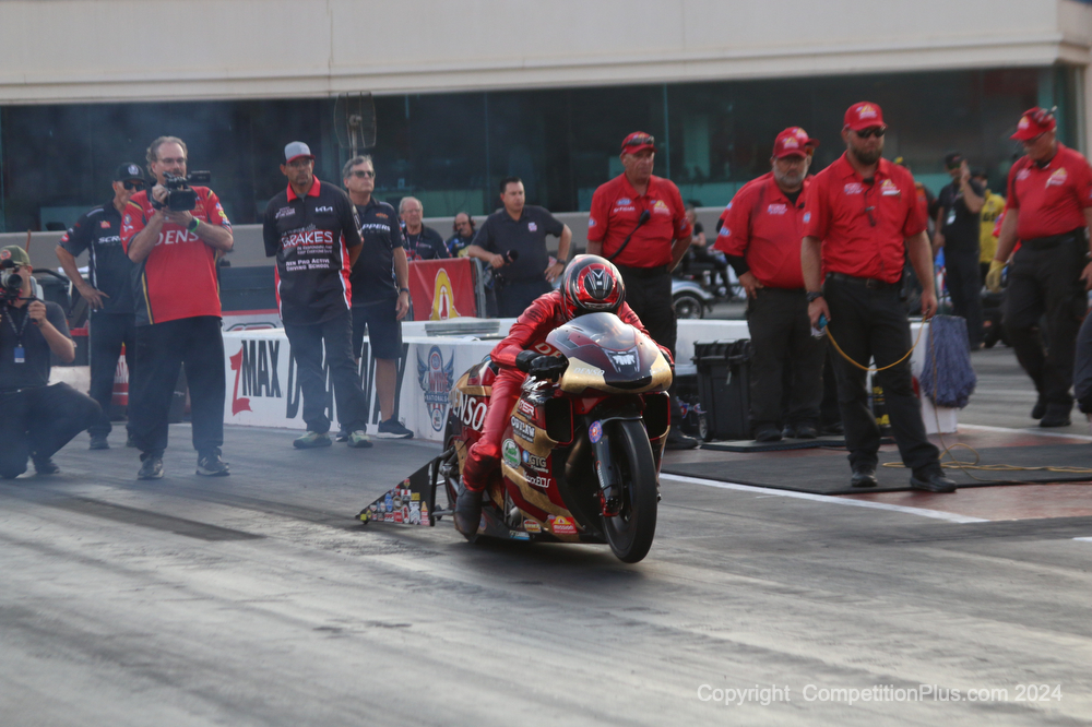 “We’re just doing what we do every week,” Smith said. “We go all out. We don’t lay back. We don’t sandbag. We throw everything we got at it, and it shows always by our speed. We just tend to struggle with 60-foots, and when you have as much torque as the V-twins have, that’s where it kind of bites us. It tries to take the tire off of the first 30 feet of the racetrack. So, in essence we don’t typically 60 foot as good as Suzuki’s bikes do. In essence, they’re a lot faster than us a lot of times, ET-wise, but we typically outrun them on speed.”