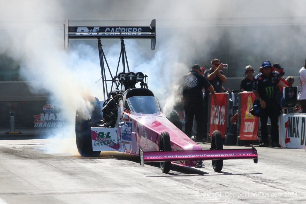 The two-time NHRA champion scored six points Friday by setting the pace in both sessions of Top Fuel qualifying. Her 3.690-second elapsed time at 334.24 miles per hour makes her the car to beat heading into Saturday’s final sessions.