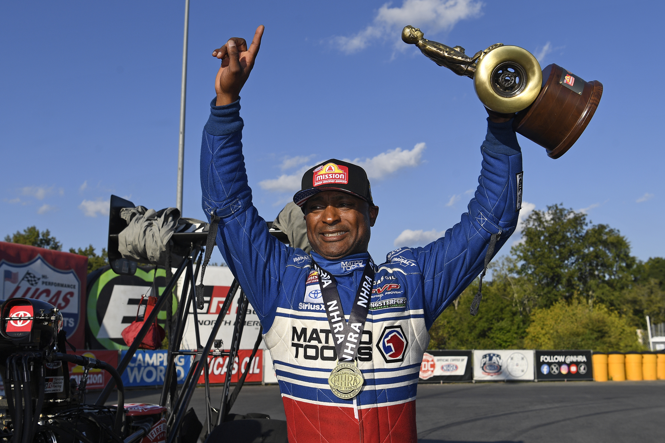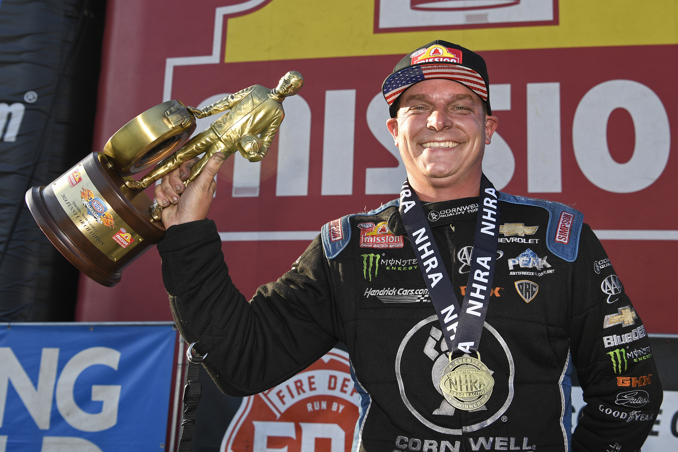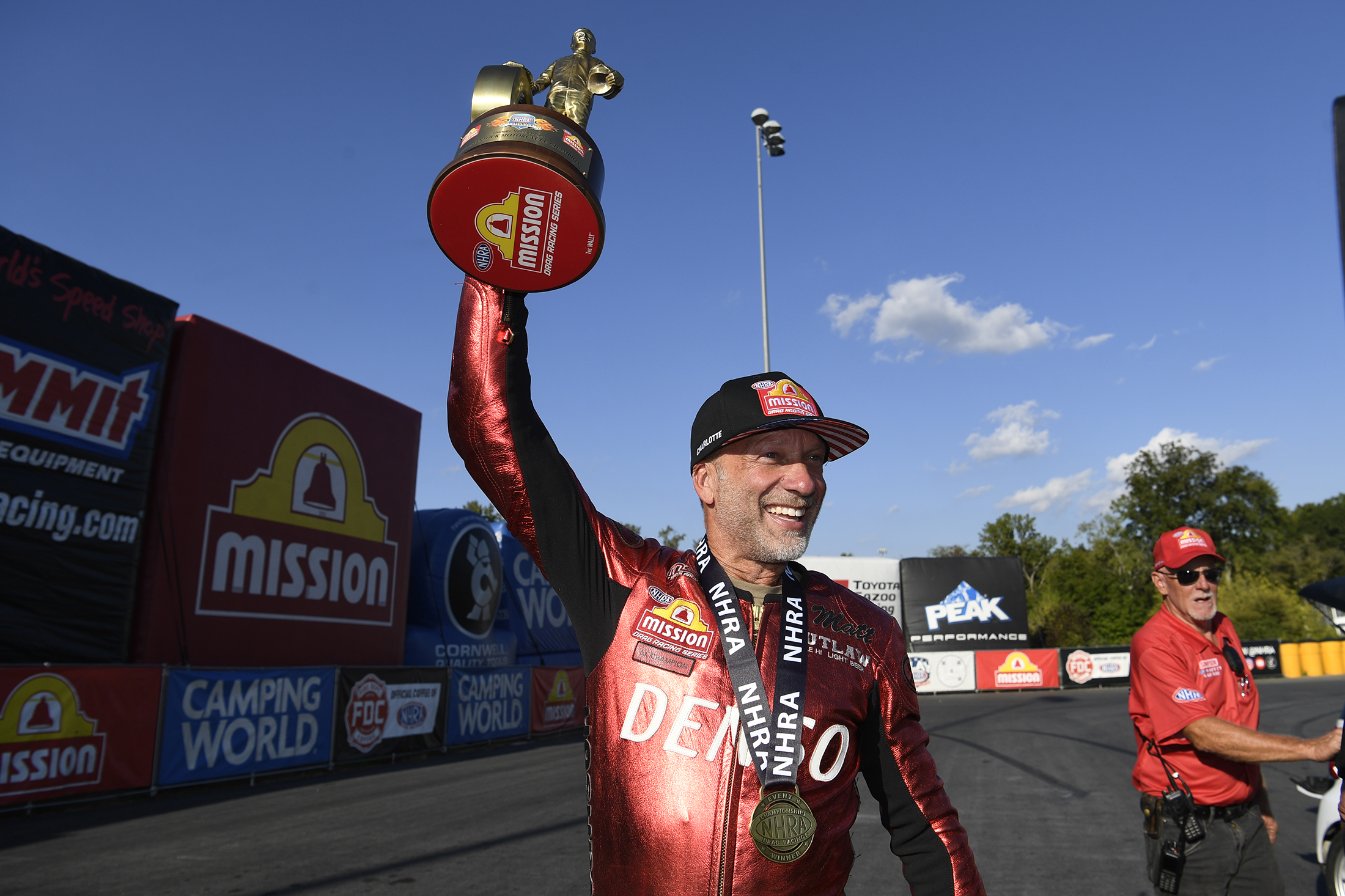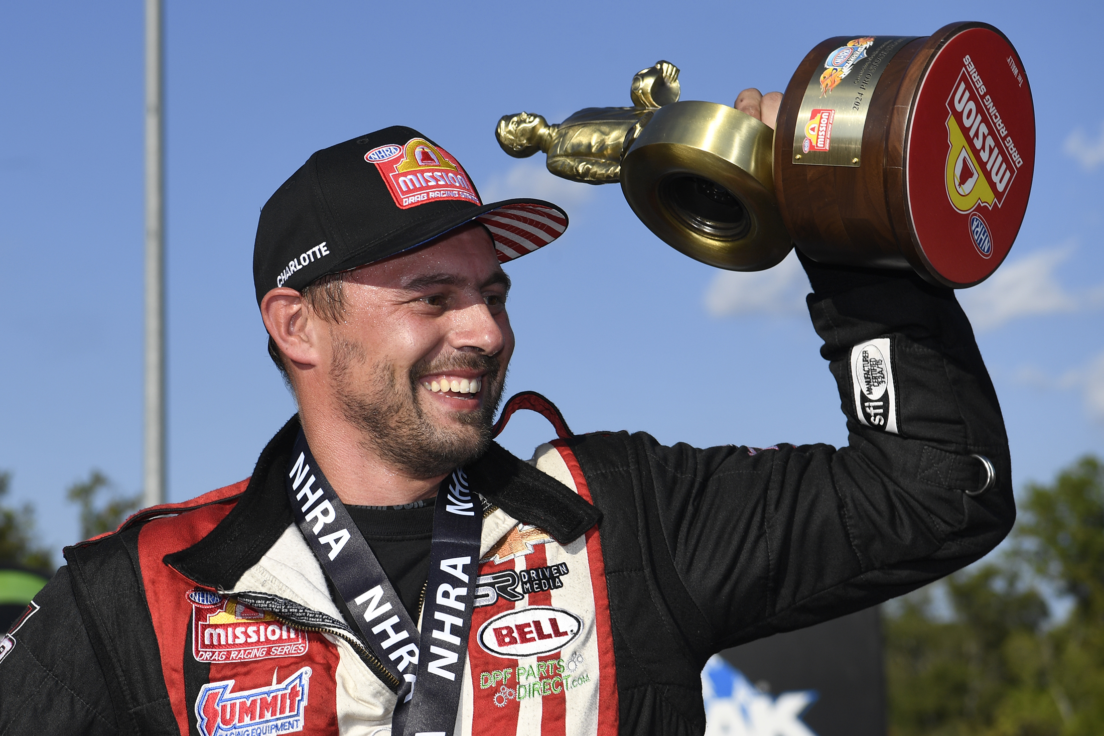 Austin Prock (Funny Car), Dallas Glenn (Pro Stock), and Matt Smith (Pro Stock Motorcycle) also secured victories at the 16th of 20 NHRA Mission Foods Drag Racing Series races this season.