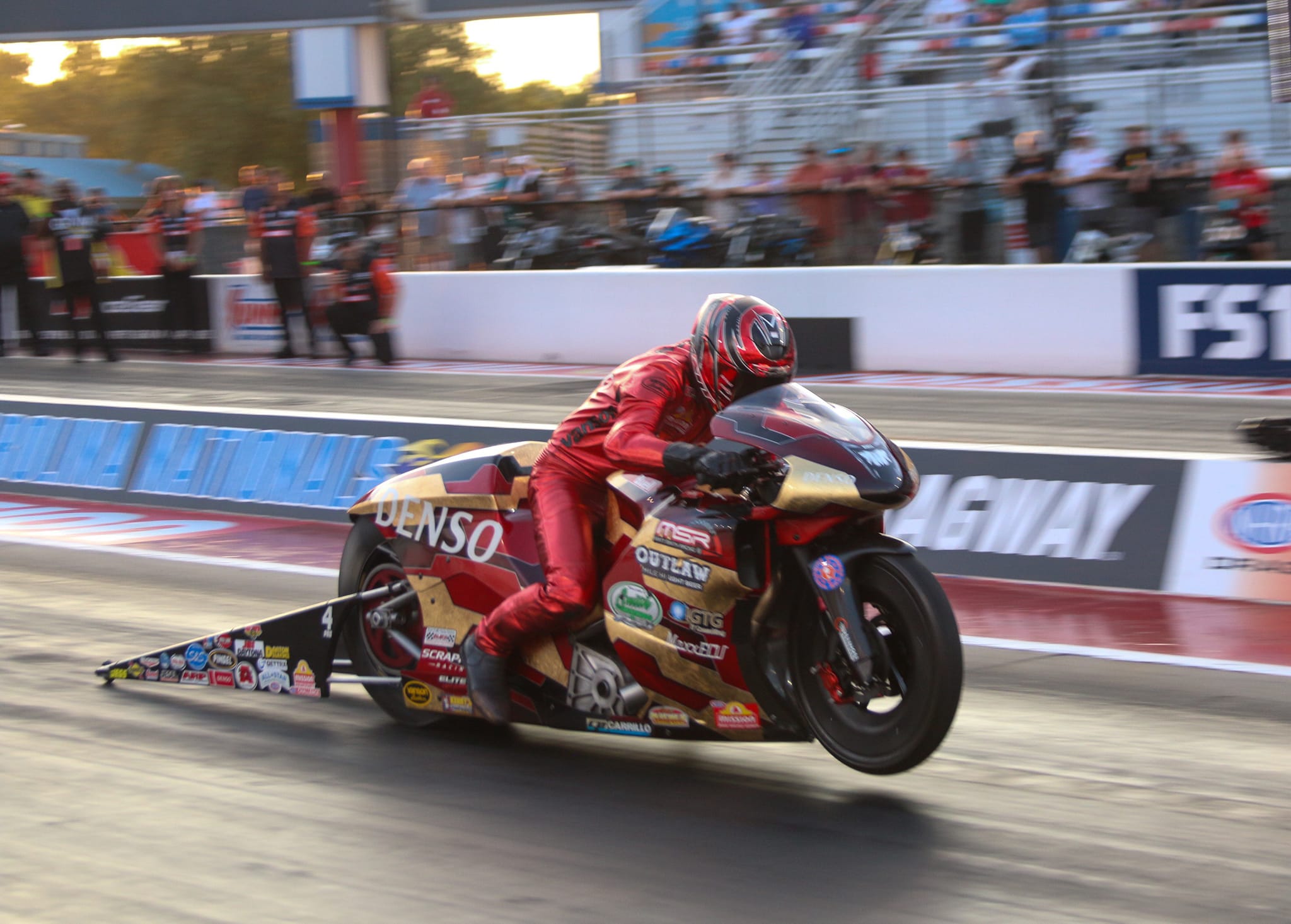 Smith took a crucial step toward a potential seventh Pro Stock Motorcycle championship, defeating rookie Richard Gadson in the final after Gadson red-lighted. Smith’s second win of the year gives him a 25-point lead over Gaige Herrera in the standings.