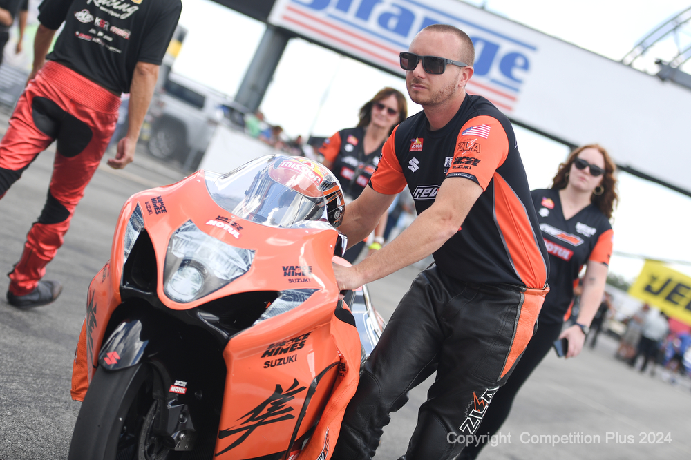 “Literally from the time I pull into the pits and get off the bike right there, one of those two gentlemen take the bike from me, roll it into the White Alligator pit, and then I don’t touch the bike. I’m not allowed to touch the bike again until I get back on it to go to the starting line for the next round. I’m able to interact with the fans. I’m able to enjoy some downtime instead of rushing back to the pit because we had a problem. And then still in my leathers, taking my clutch out and working on the bike and doing it … And then my wife and I are stressed, and this was just no fun. So, this has made it fun for me again.”