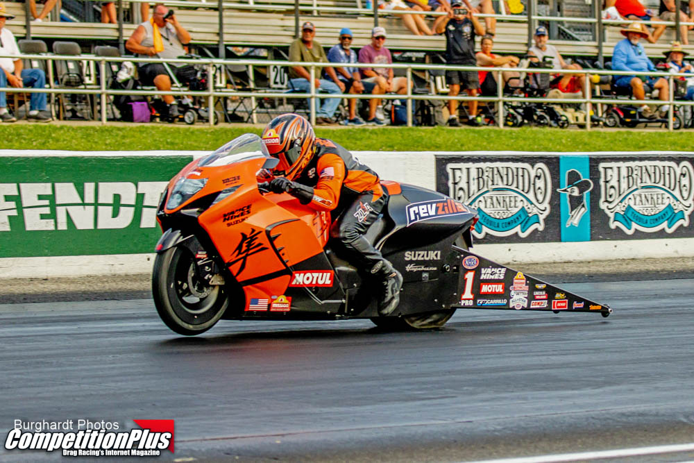 “We are done with the Suzuki program. Actually, I’ve sold both of my chassis and sold two motors with it. I still got one more (Suzuki) motor, but I don’t have any more bikes. So, like I told NHRA, I said, ‘I don’t have to have two makes if you keep parity right in the class.’ It saves me a lot of money from having to jump back and forth.”