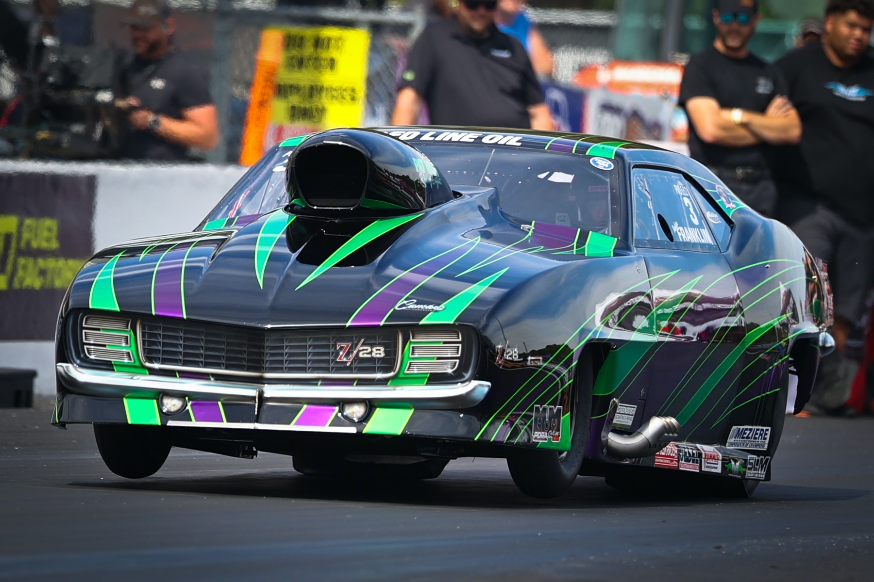 Franklin, the three-time and defending world champion, made his best run of the day in the final session next to Halsey, posting a 3.649 at 206.26 in his Musi-powered “Jungle Rat” ’69 Camaro to qualify No. 2. Fredy Scriba, who is third in points behind Franklin, qualified third in his Musi-powered “Sorcerer” ’69 Camaro with a 3.653 at 206.95.
