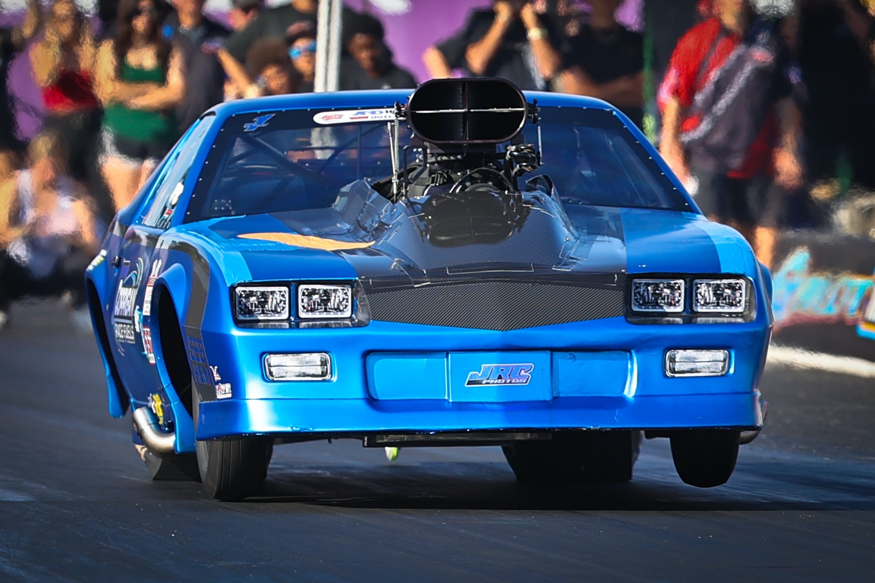 AMBER GETS HER FIFTH PRO 632 NO. 1 OF 2024 – Past Pro 632 world champion Amber Franklin Denton, who recently married longtime partner and reigning Super Street world champion Blake Denton, charged to her fifth No. 1 qualifier award of the season, further padding her substantial points lead. Driving her Musi-powered “OG Jungle Rat” ’69 Camaro, Franklin Denton recorded a 4.138 at 172.36 in the final qualifying session to take the top spot. The past Pro Jr. Dragster world champion has a shot at locking up another world championship during Saturday eliminations.