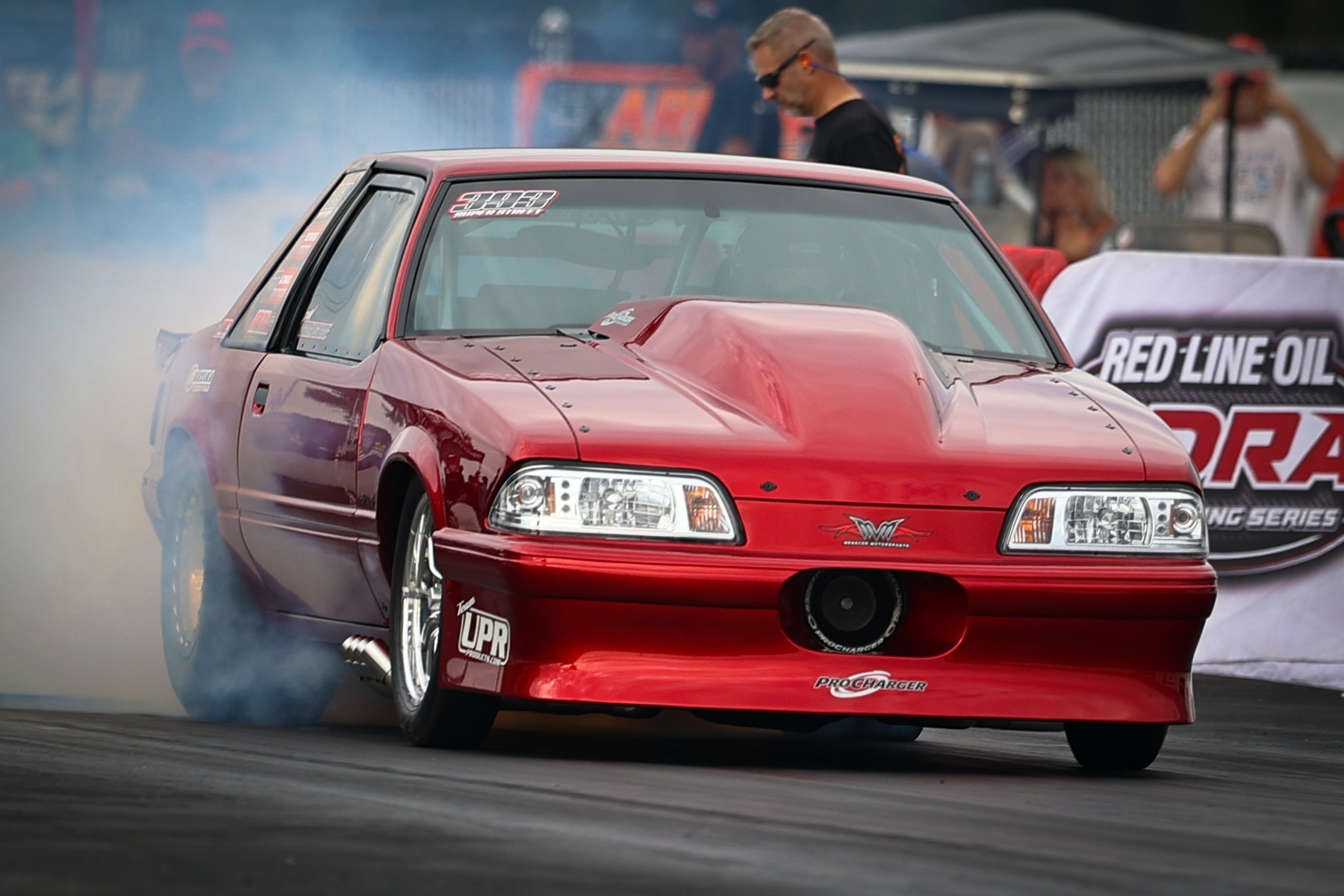 CLASH OF THE SUPER STREET TITANS – The top two drivers in Super Street points, Dan Whetstine and Derek Mota, charged through three rounds to square off in the final round. Whetstine padded his lead over Mota with a nearly maximum points weekend, qualifying No. 1 and defeating Mota in the final round. Whetstine in his ProCharged “Red Velvet” ’91 Mustang set low E.T. of eliminations with his 4.612 at 160.56, while Mota left hard but got out of shape and had to coast through the finish line to a 6.704 at 79.11.