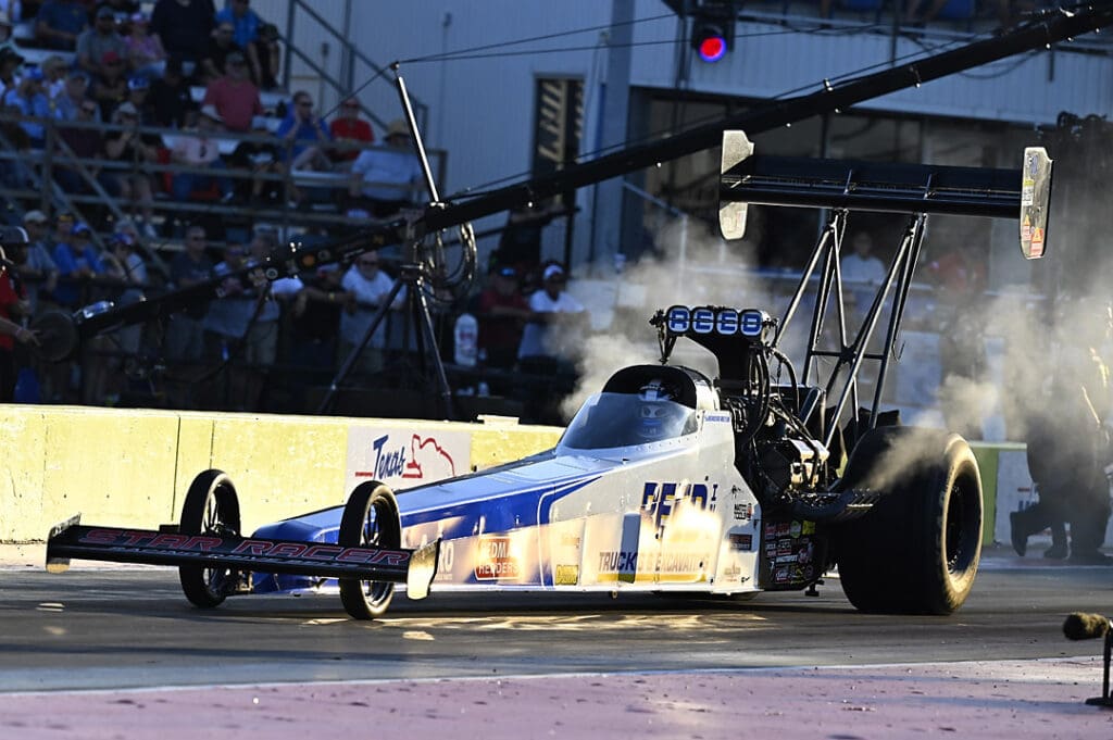6 – BURNOUT BY BILLY – Billy Meyer turned back the clock Friday night at Texas Motorplex, climbing into a Funny Car for the first time in 37 years to celebrate the track’s 40th anniversary with a burnout that reminded fans why he remains one of drag racing’s great showmen.