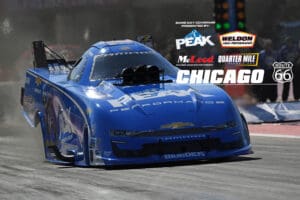 Now he’s done the same in Chicago, winning in NASCAR at Chicagoland Speedway across the street from Route 66, as a team owner on CLS’s dirt track, and now as a Top Fuel driver at Route 66.