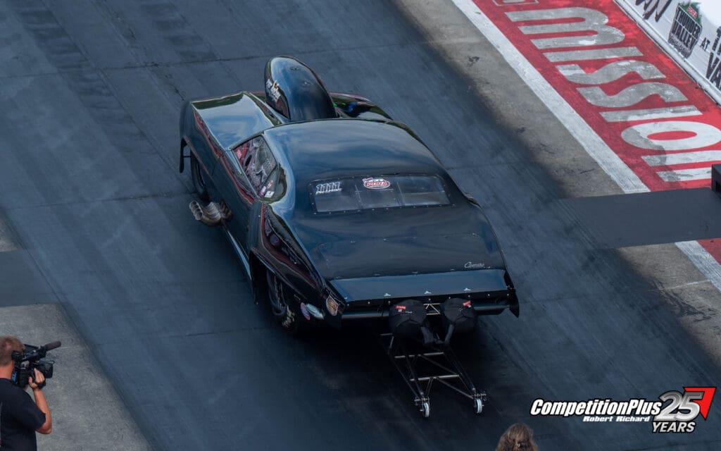 Franklin powered his Musi-equipped “Jungle Rat 3.0” ’69 Camaro to a 3.784-second run at 202.67 mph. The performance secured the No. 1 qualifying position for the third time this season. Qualifying was called off after two sessions when a torrential downpour that went well into the night forced the cancellation of qualifying.