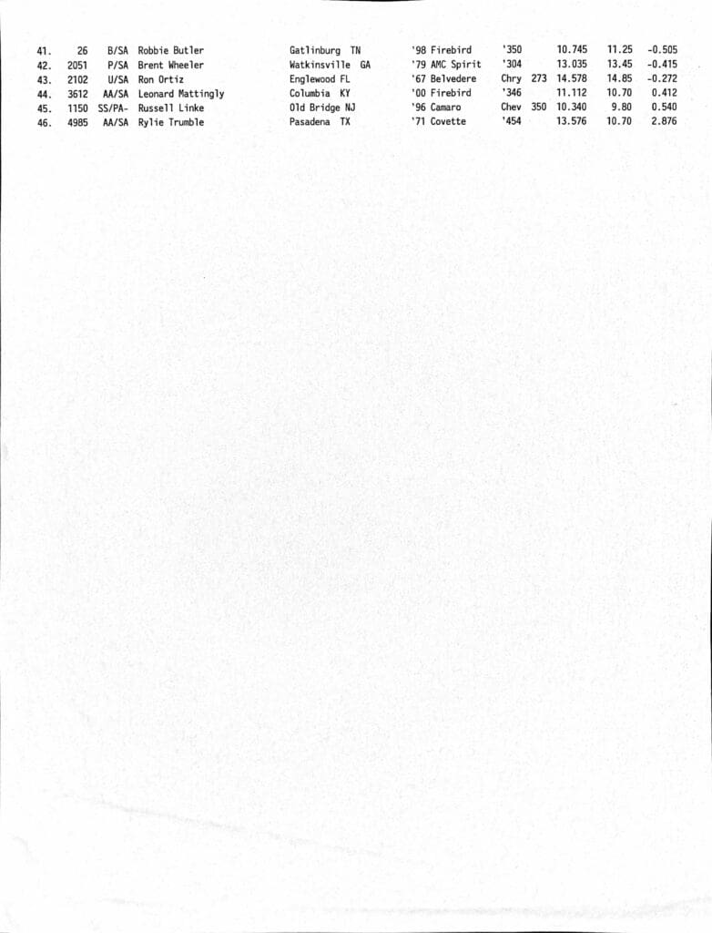 “The thing got inside a little bit, made an aggressive move, and the car was a little unsettled going over those bumps down the track and just was hopping around down there, got a little inside, but it was still good enough for a 3.81. These cars are handfuls, and they are definitely not easy to drive, and we like that challenge every now and then.”
