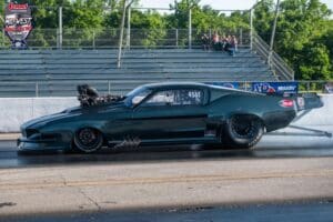 Aaron Wells raced his newly painted “Bullitt” Mustang to victory in Pro Mod. He overcame mechanical issues and bested Ron Muenks and Jacob McNeal, finishing the finals with a time of 3.619 seconds.