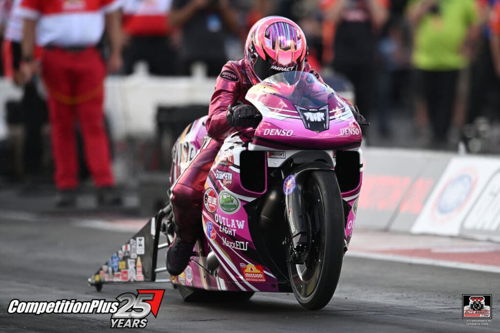 The Pro Stock Motorcycle category also saw a standout performance from Angie Smith.