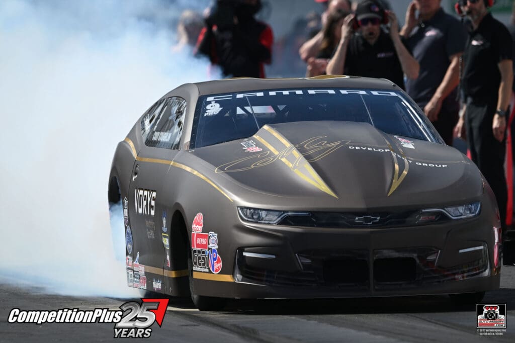 Cody Coughlin continued his steady progression in Pro Stock by claiming the provisional No. 1 spot in a 21-car field. His 6.523-second pass at 210.01 mph in the Coughlin Construction Chevrolet Camaro led the class through the opening two sessions.