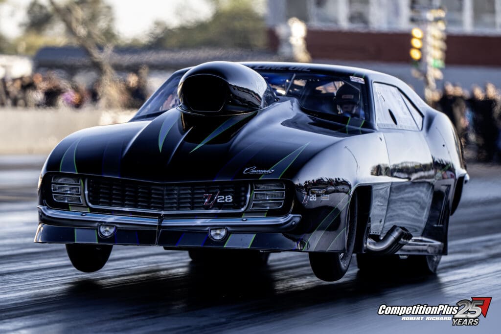 Momentum shifted in the second round when Johnny Camp reset the benchmark by one-thousandth of a second with a 3.542-second pass at 213.88 mph in his ProCharged “Hells Bells” ’69 Camaro tuned by Brandon Stroud. Camp advances to face Melanie Salemi in the semifinals, while reigning world champion Ty Tutterow meets Lyle Barnett on the opposite side of the ladder.