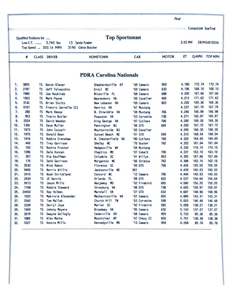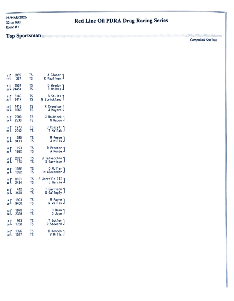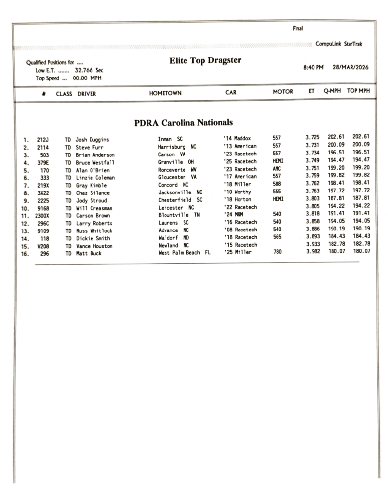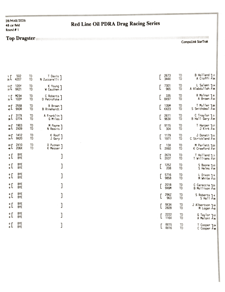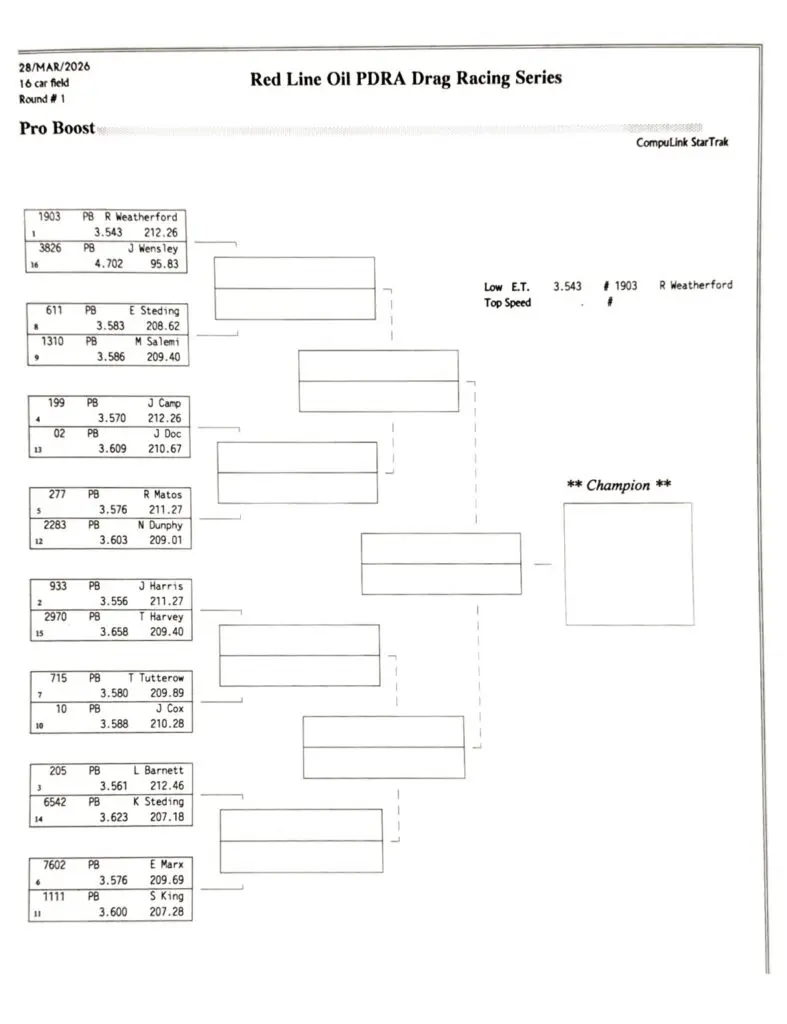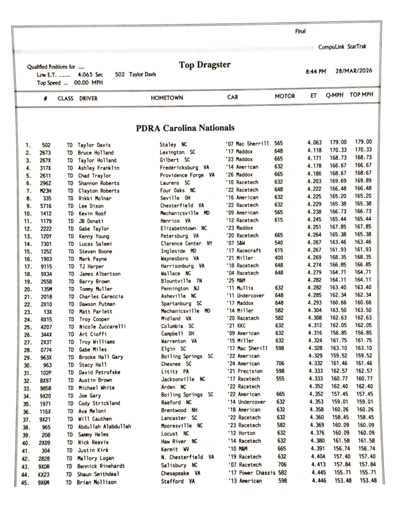 2026 PDRA DARLINGTON – FULL EVENT RESULTS