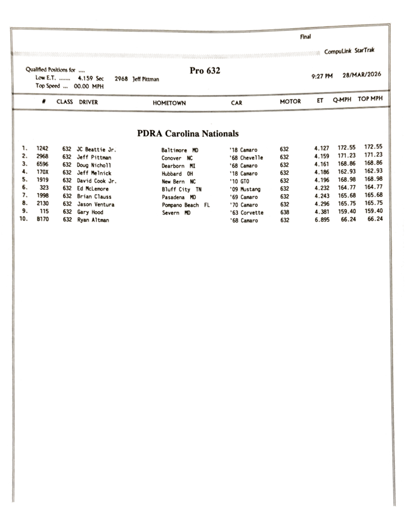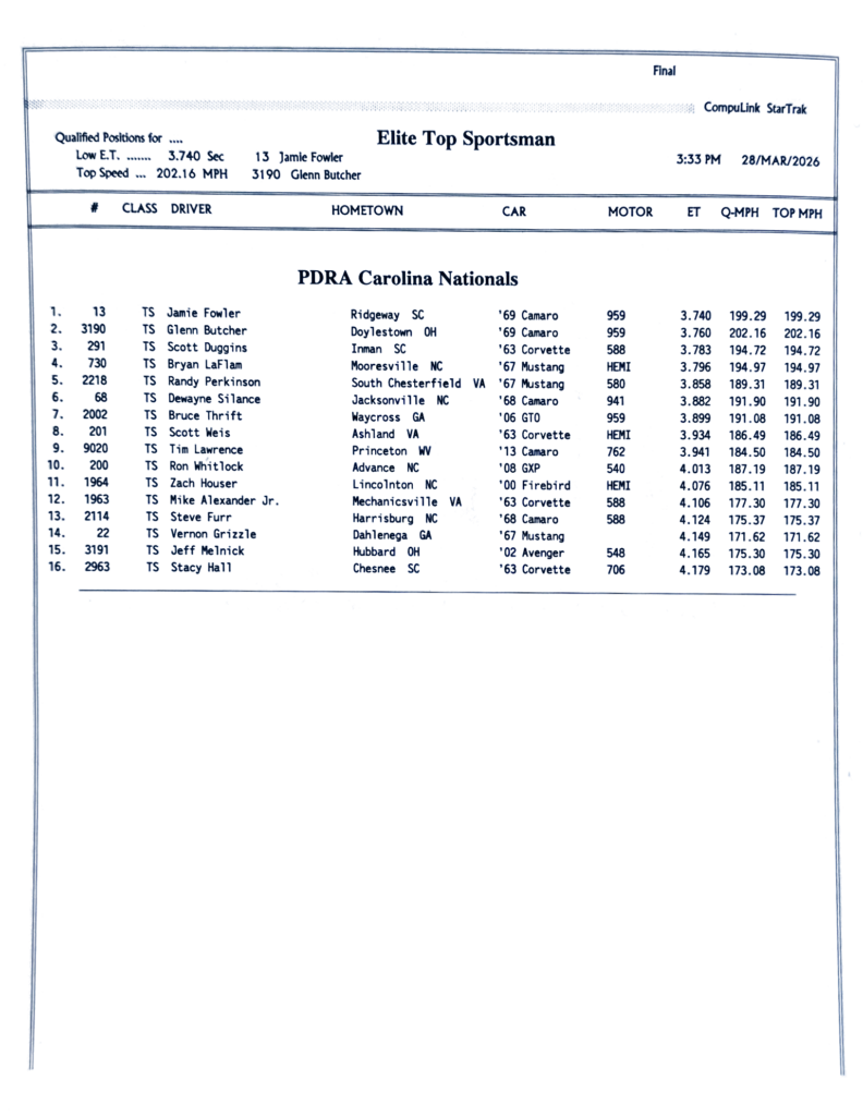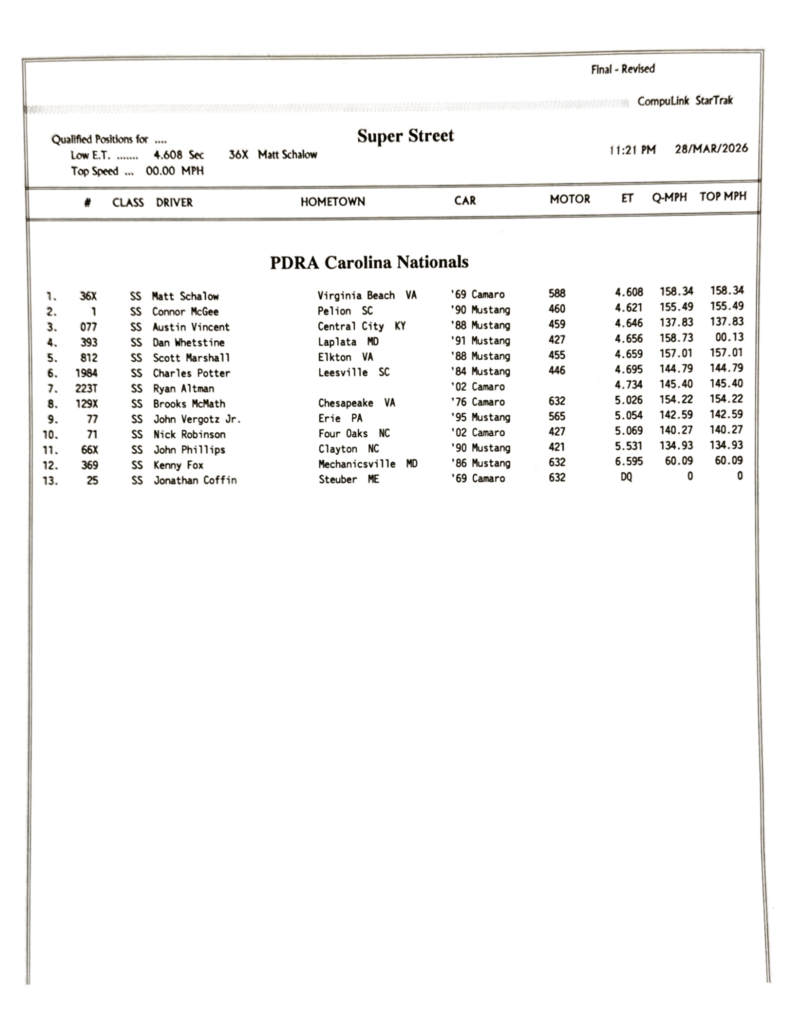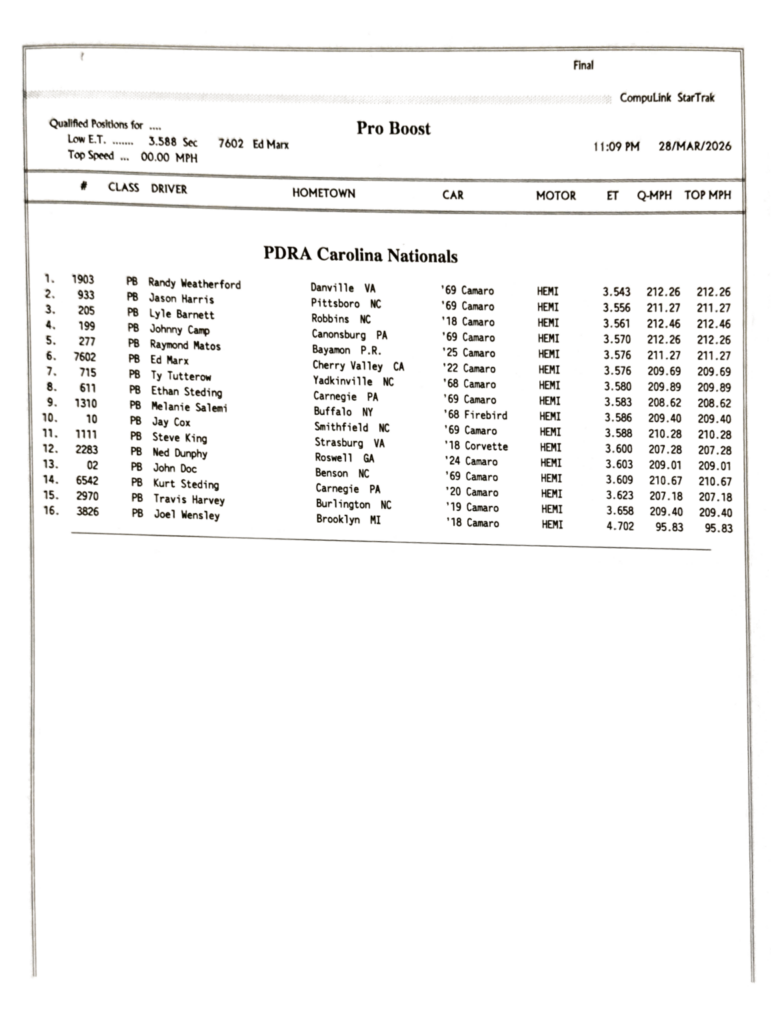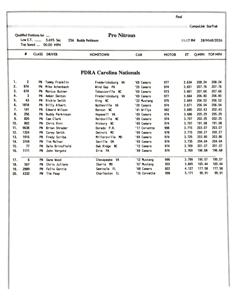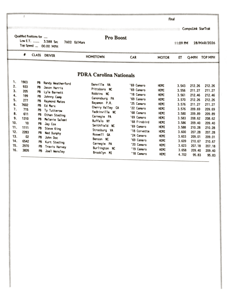 2026 PDRA DARLINGTON – FULL EVENT RESULTS