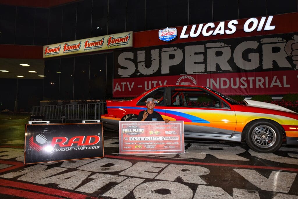 Cory Gulitti collected the opening big check of the week at the RAD Torque Systems Fall Fling presented by Optima Batteries, winning Tuesday’s Rob’s Automotive $20,000 32-Car Shootout at Bristol Dragway.