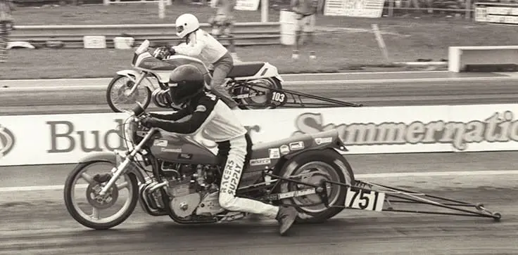 “I got a street bike for under a thousand dollars and could race. It was a pretty fast, 11-second Kawasaki. And then I wanted to go full-time racing. But then when we got to go to that first NHRA race and the guy backed out on me and we had to put our bike in a wooden crate that we all built and shipped it there. We raced and won the first round, qualified, won the first round, and would’ve won the second round but my bike didn’t shift.”