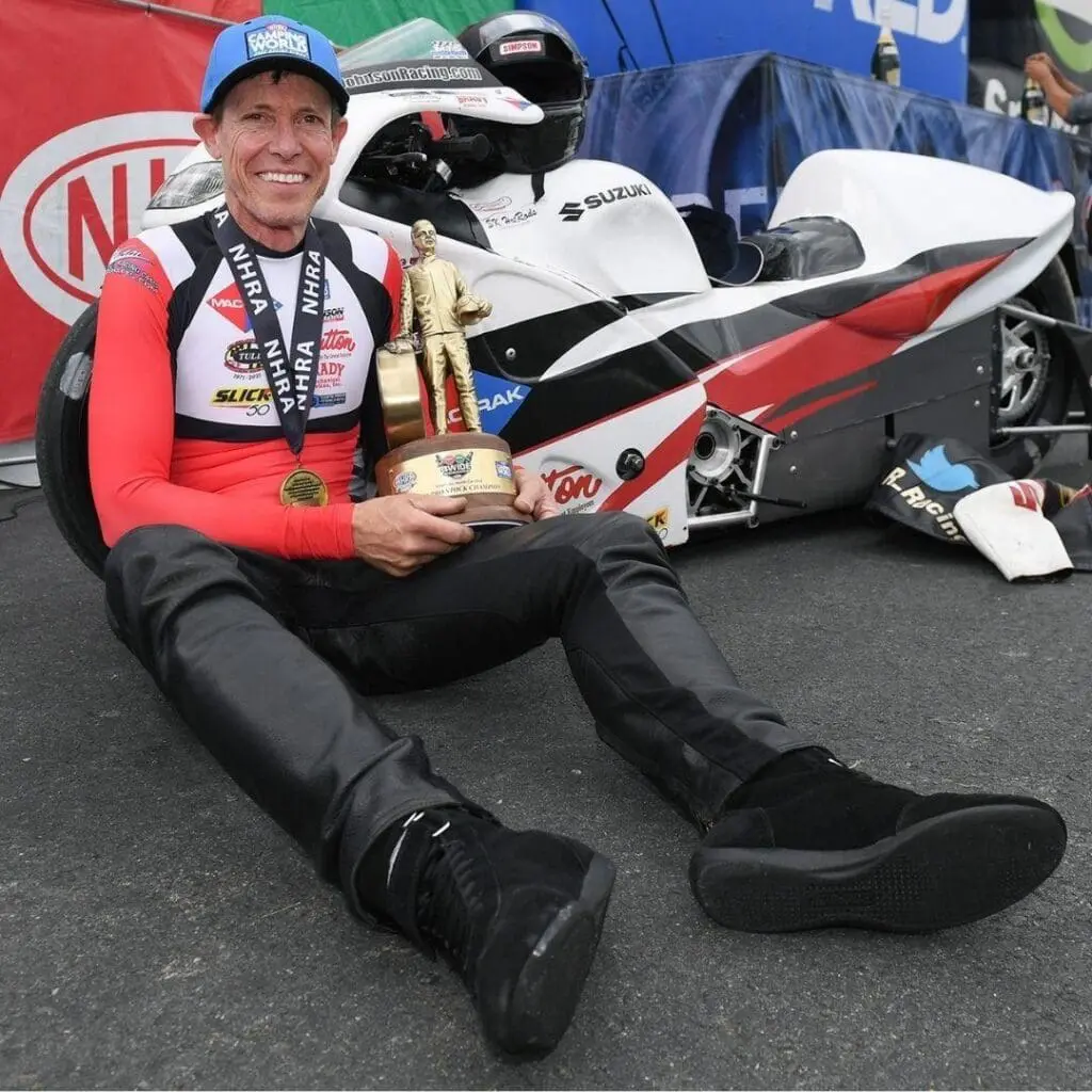 These days, Johnson has a more personal investment in his performance. Along the way, he utilizes his vast network within and outside of the Pro Stock Motorcycle world, which includes several legends of the sport.