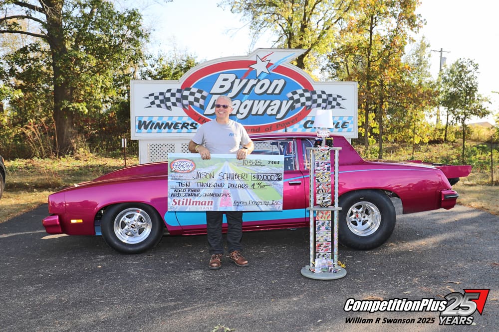 Before a packed house, Jason Schubert of Lena, Illinois, wheelied his way to a $10,000 payday Sunday at the 31st World Power Wheelstanding Championships at Byron Dragway.