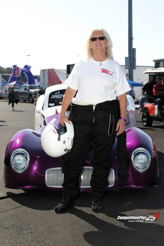 She arrived with “Barney,” the famous 1941 Willys built by Tommy Mauney for the 1995 IHRA Pro Modified season. That deep purple car wasn’t just another nostalgia piece. It was a weapon of history — the same one that ended Scotty Cannon’s five-year reign and started a new era for the class.