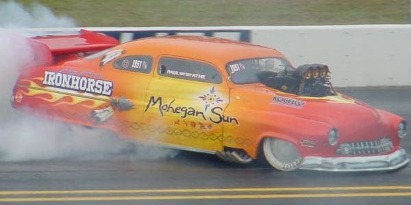 Alcohol Funny Car standout Jay Payne stood alongside his father-in-law, Top Alcohol icon Brad Anderson. After seeing Rocca — dressed in full Indian garb — back the car up and then witnessing the contact and continuation of the run, legend has it Payne turned to Anderson and said, “They have Indians, they crash into each other and still race, ‘we gotta have one of those.”