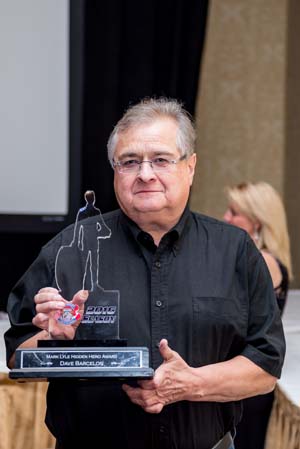 In a surprise presentation Saturday night, longtime Bremerton racer and businessman Dave Barcelon was the inaugural recipient of the NHRA Northwest Division 6 Mark Lyle Hidden Hero Award.
