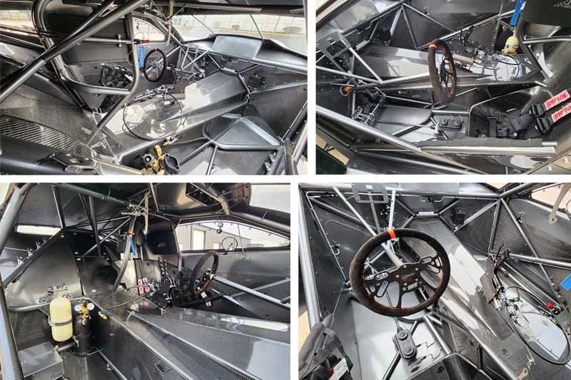 A fully loaded lightweight carbon fiber interior from Quarter-Max includes 48″ carbon fiber wheel tubs, carbon flat sheet panels, carbon wraparound seat, carbon interior door handles, carbon pro mod double frame rail transmission tunnel, and carbon belly pans. The exterior of the car is an all carbon fiber body from Five-Star Race Car Bodies with paint and graphics by SD Enterprises. The car was recently turnkeyed at RK Racecraft with wiring by Homier Fabrications.