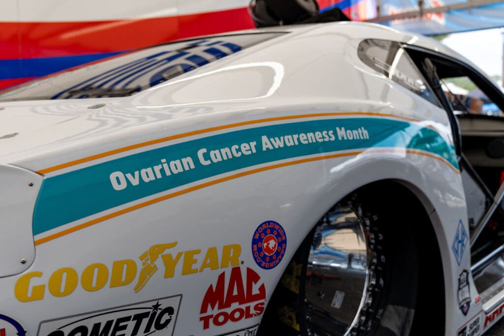 Reed’s son, Theo, recently completed chemotherapy, while his aunt, Anita Strasburg, is undergoing treatment for ovarian cancer. To honor them, Reed’s J&A Service Camaro displays a gold ribbon down one side for childhood cancer awareness and a teal ribbon on the other to represent ovarian cancer awareness.