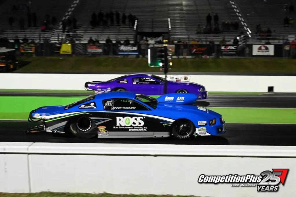 For the second time in a row, the Mountain Motor Pro Stock division came down to Johnny Pluchino and Jordan Ensslin. Pluchino made it two in a row by stopping Ensslin with a 4.014, 180.21 to 4.032, 178.54 performance.