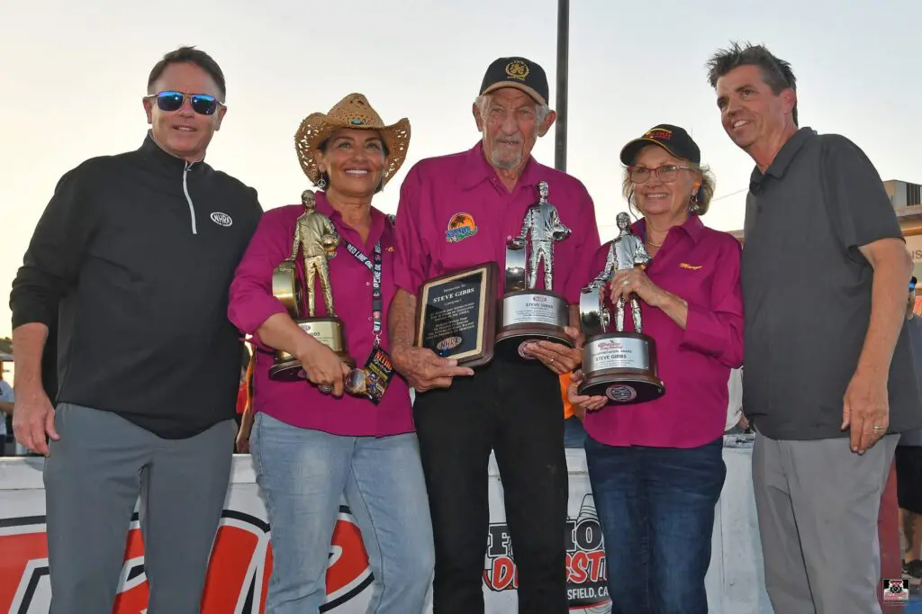That atmosphere of gratitude reached its emotional peak when Gibbs and his wife, Marge, stood center stage to accept the recreated Wallys from Cromwell. It wasn’t a publicity stunt or a press conference—it was a quiet, powerful moment of respect between a sanctioning body and one of its most influential figures.