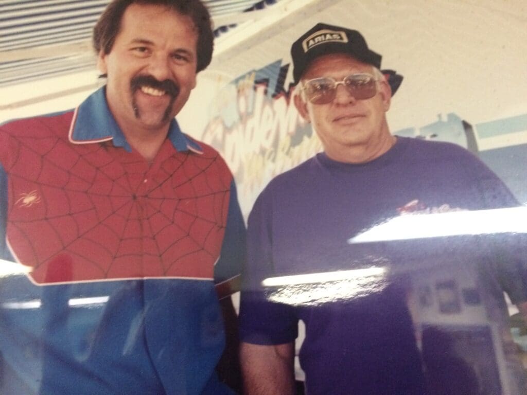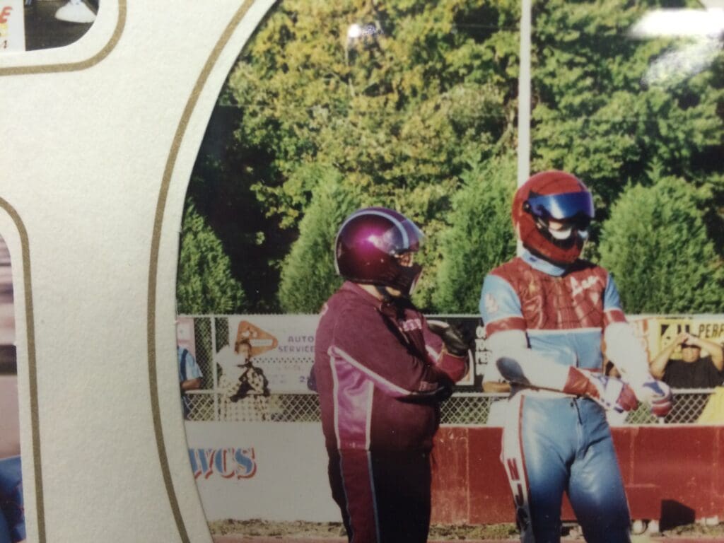 McBride said the relationship began the way most enduring racing friendships do — around trailers, tuning notes and respect that grows when someone keeps showing up. “Racing. I met Elmer in, God, I’m going to say, Bobby, 1978,” McBride said, tracing it to his time riding for Squeaky Bale and crossing paths through fabricator John Dixon.