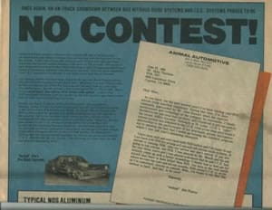 Some of the ads were very brutal indeed, and some were downright comical. On one occasion an ad almost landed a racer and a nitrous company in court. When Feurer made the switch to I.C.E. from NOS and then returned to give a testimonial in an ad, some quality mudslinging took place between the parties involved.