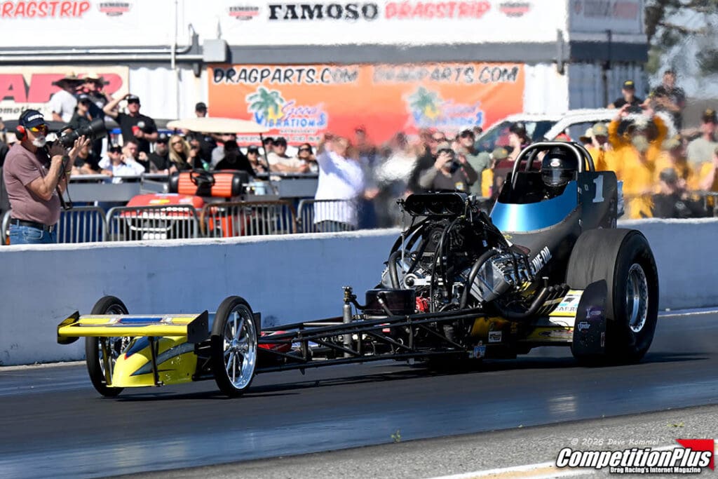 That changed Sunday when Hilton converted the top qualifying position into his first Bakersfield March Meet victory. The triumph at Famoso Dragstrip completed a résumé that already included four NHRA Heritage Series championships.