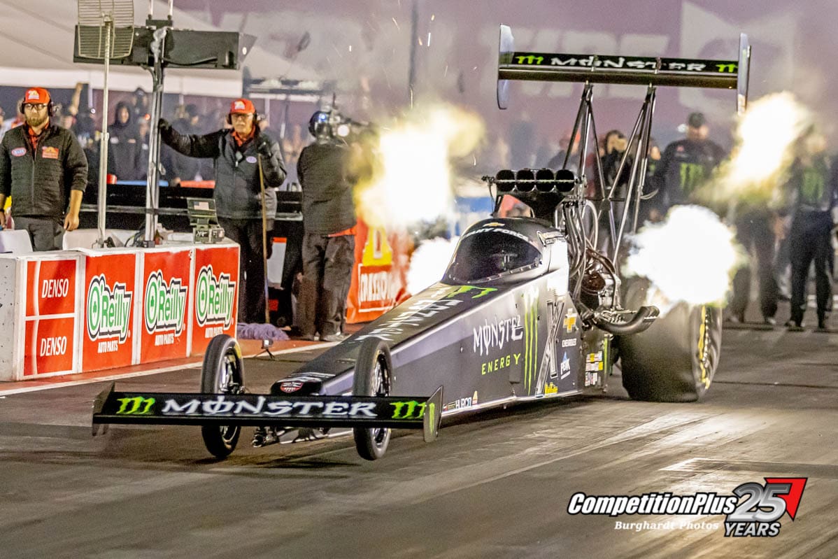 “I’m still in awe over Brittany [Force’s] 343 mph run,” Hagan said. “Conditions were incredible. It was a mineshaft out there. These nitro motors like to be loaded, and we got that tonight.”