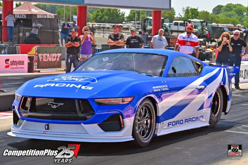 Stationed across from the nitro pits, the Ford display drew steady traffic as fans studied the car and asked the same question racers always ask first: What’s in it, and how fast will it go next?