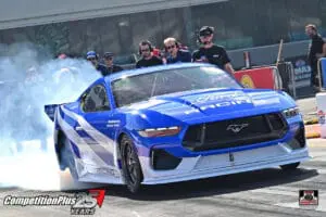 Ford Performance’s Mustang Cobra Jet 2200, driven by Pat McCue, delivered a 6.832-second quarter-mile at more than 220 mph, a pass recognized as the quickest recorded full quarter-mile run by an electric-powered vehicle. In a facility known for Top Fuel violence, Funny Car fury, and Pro Stock precision, the EV exhibition car found a way to own its own corner of the conversation.