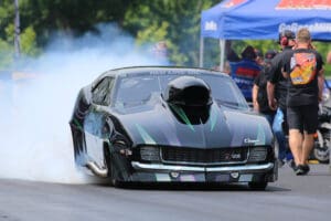 Retired NFL Superstar Cox continues to shine in his new sport, driving to the No. 1 spot in Pro Street in only his second racer since transitioning from team owner to driver. He ran a 4.027 at 192.03 in the heat of the day behind the wheel of his Phil Shuler-tuned, nitrous-fed “Training Day” ’69 Camaro.