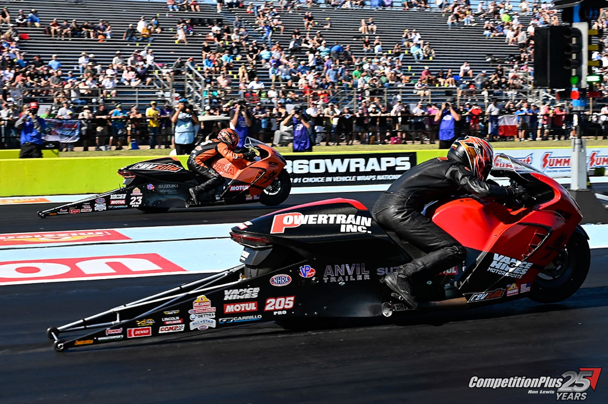 “I was pretty calm going against him,” he said. “It was already a good day, a good points day. He’d beaten me three times, and I told myself he can’t keep doing it. The law of averages says one of these times it’s got to swing my way. So I just popped the clutch, cut a good light, and it was my turn.”