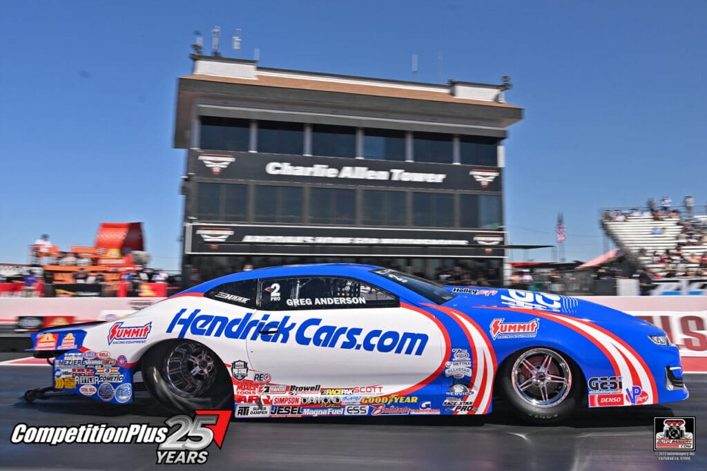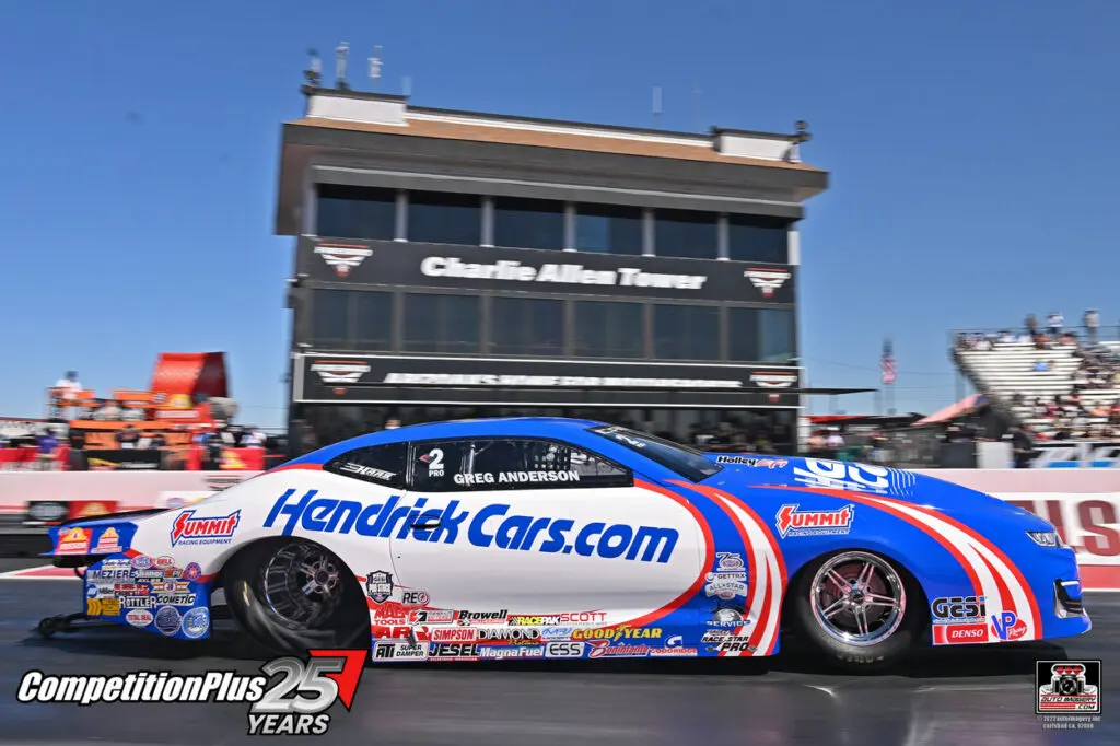In Pro Stock, six-time world champion Greg Anderson delivered the quickest run in both sessions, including a 6.552, 206.99 in his Chevrolet Camaro. The performance positioned him for the 141st No. 1 qualifying effort of his career.