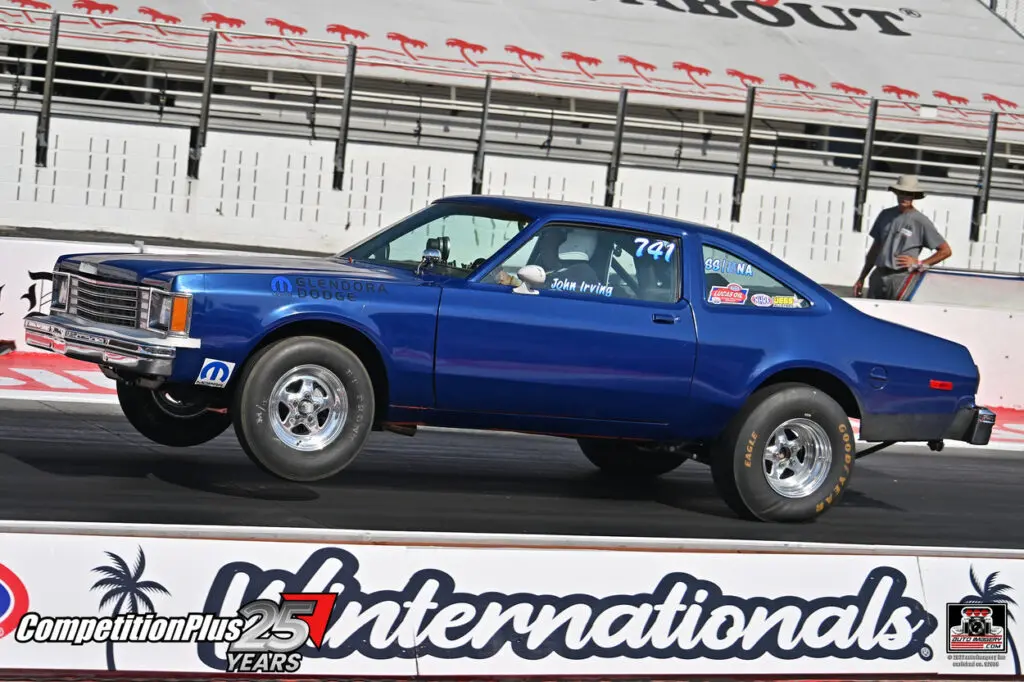 In Super Stock, John Irving of Boulder City, Nevada, claimed the No. 1 position with an 11.035-second run, 1.115 seconds under his index. Tim Seymour of San Dimas, California, was second at 8.943 (-1.107), followed by Mike Cotten at 9.943 (-1.057).