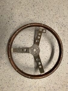 There’s nothing special about it at first glance, and its presence in a trophy case would elicit an obvious question: Why? It’s just a steering wheel, right? It’s a circular implement made of metal and wood, held together by a dozen bolts — and it’s clearly an old piece at that, with a closer inspection of the chrome revealing tiny specks of rust.