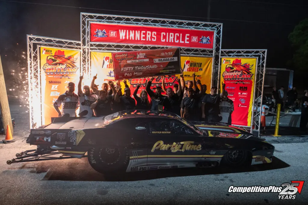 By winning the first event in the three-race Drag Illustrated Winter Series, Harris became the only driver left eligible for the inaugural Elite Motorsports Million bonus awarded to any racer who sweeps all three events. He also stands alone in contention for the Jerry Bickel Race Cars Clean Sweep Challenge, which grants a new rolling chassis to any driver qualifying No. 1 at all three races.