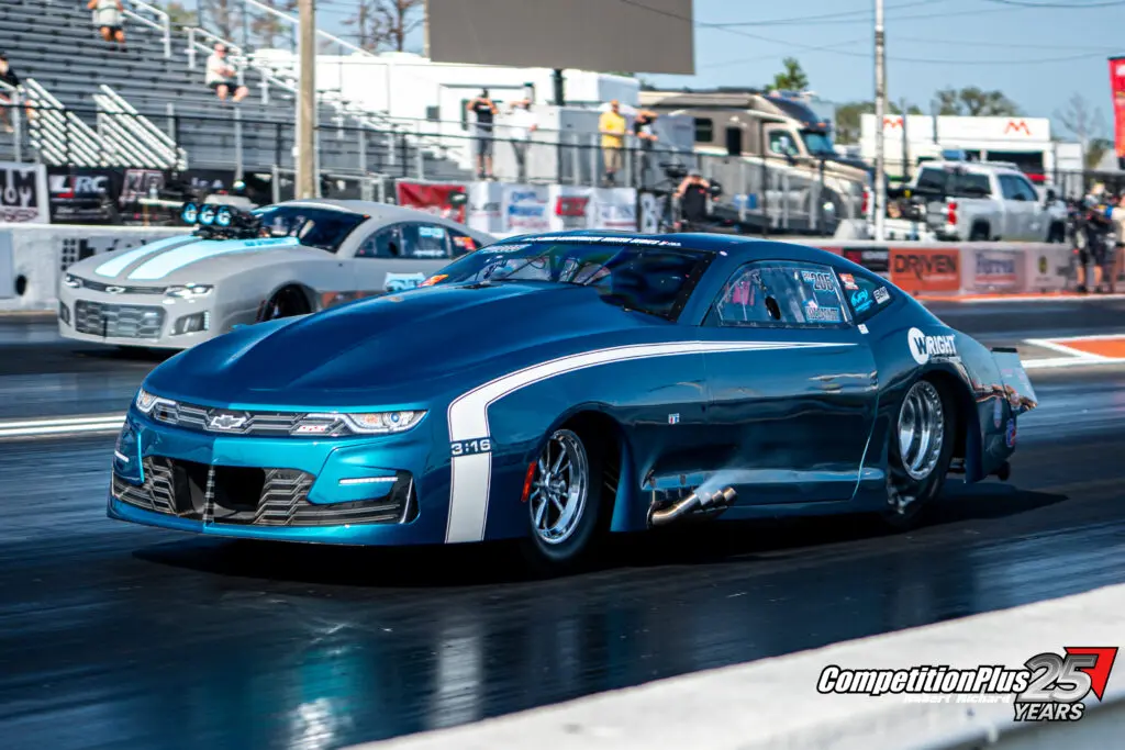 Defending Snowbirds winner Kye Kelley returned with a purpose-built Pro Mod after winning last year’s race in a steel-roof-and-quarters Camaro. His new Larry Jeffers Race Cars ’25 Camaro, nicknamed “Uncle Larry,” posted a 3.575 at 209.62 for the No. 4 position.