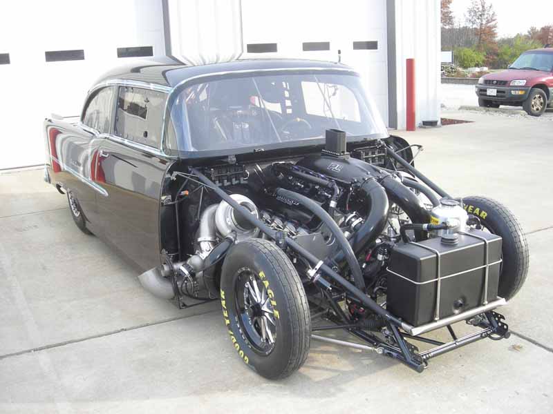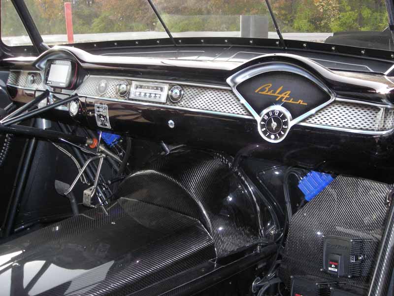 As Bickel puts it, Achenbach’s ’55 Chevy is more detailed and equipped than any car has had roll out of his shop. This shoebox retains a large measure of steel body, and flows with full-size carbon fiber elements. It is powered by a twin-turbo ProLine engine.