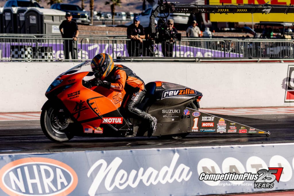 Gaige Herrera delivered under pressure in Las Vegas, winning his third straight NHRA Nevada Nationals on Sunday and tightening the Pro Stock Motorcycle championship race to within a single round. The defending two-time world champion rode his RevZilla/Motul/Vance & Hines Suzuki to a 6.809-second, 198.17-mph pass to beat Angie Smith in the final and close to just 21 points behind teammate Richard Gadson heading into Pomona.