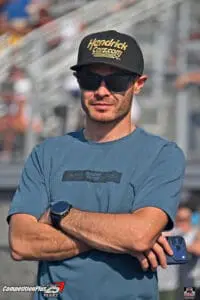 Larson spent time around the John Force Racing camp, visiting with HendrickCars.comteammates Josh Hart and Jack Beckman. If you didn’t know who he was, he looked more like a fan killing time than one of America’s most accomplished racers.