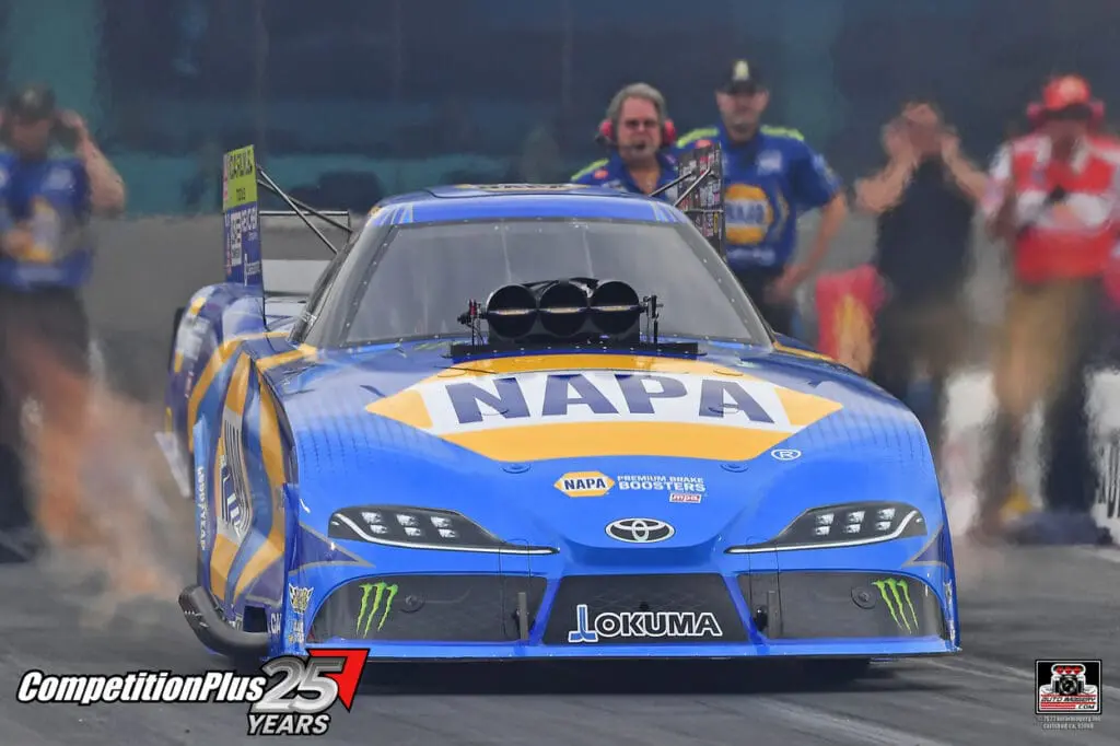 Capps’ Friday pass of 3.883 at 333.91 in the NAPA Toyota GR Supra held for the 39th No. 1 qualifier of his career. His first quad includes Austin Prock, Spencer Hyde, and Chad Green.